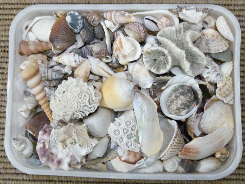 Box of coral, shells etc