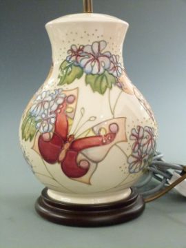 Moorcroft large table lamp decorated with butterflies, H40cm
