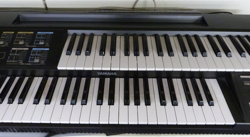 Yamaha Electone ME-30 keyboard complete with stand, bass pedals and mounts, a pair of Carlsbro keyboard speakers, Colt 45K keyboard speakers and a stool
