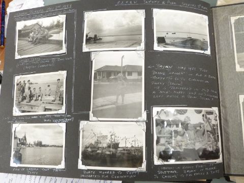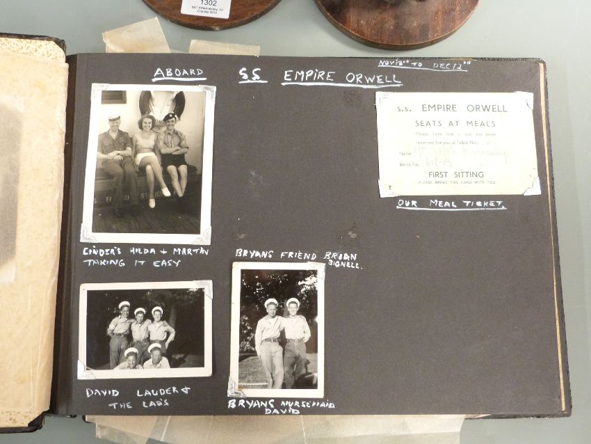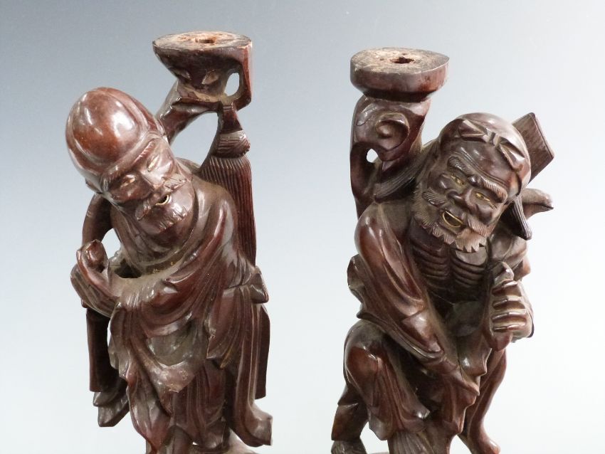 Pair of carved Chinese hardwood figures, 1950s Japanese lacquer photograph album relating to Singapore, Hong Kong, SS Empire Orwell etc