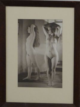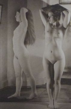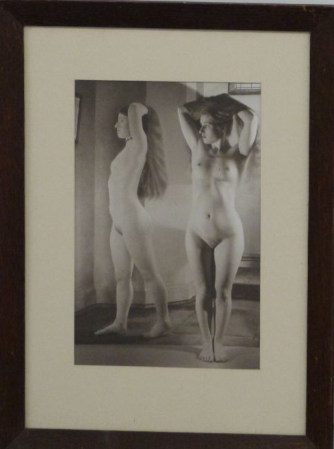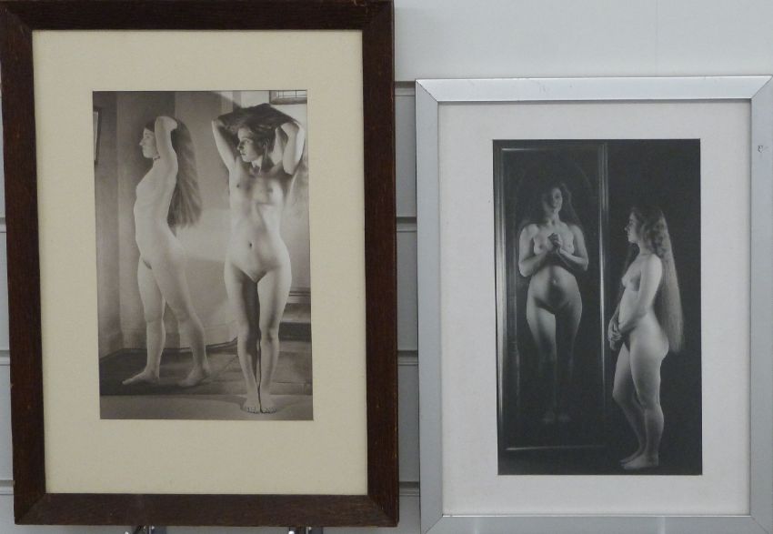 Kit Williams two photographs of nude model alongside a painting of the same girl, one with KW blind stamp and further KW to margin, both 24 x 15cm, framed and glazed