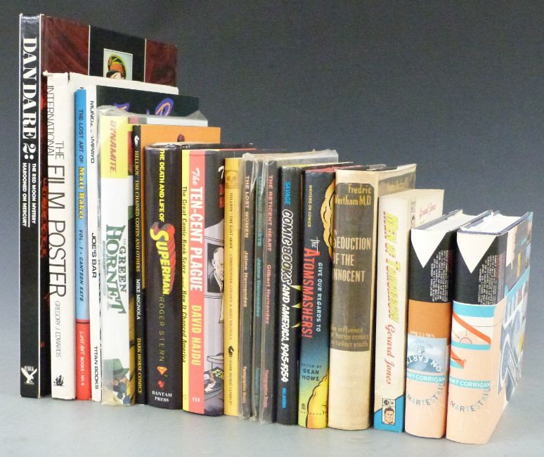Eighteen comic related books including Dan Dare 2, The Death And Life of Superman, Men of Tomorrow, Ten Cent Plague, The Smartest Kid, The Green Hornet, The International Film Poster etc.