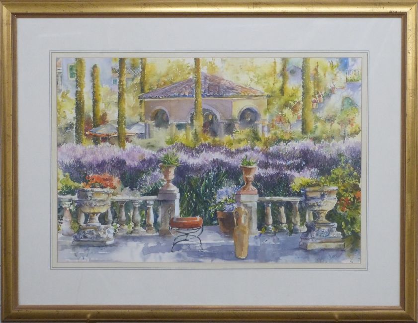 Annette Kane watercolour 'Italian Sham', 55 x 73cm, framed and glazed