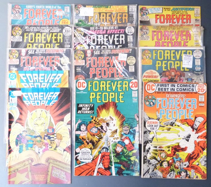 Thirteen DC Comics Forever People comprising 2-8, 9 x2, 10, 11 and 1 and 2.