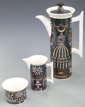 Susan Williams-Ellis for Portmeirion pottery retro coffee set decorated in the Magic City pattern