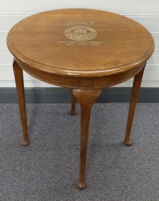 Occasional table with Windsor coat of arms, raised on cabriole legs, diameter 59cm