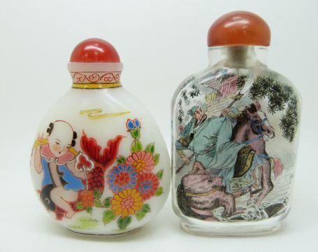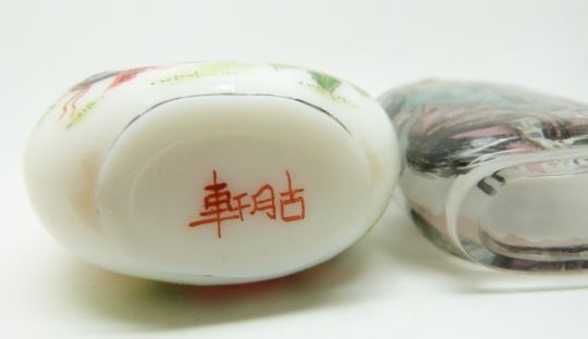 Japanese reverse painted scent bottle (8cm tall) and another scent bottle (7cm tall)