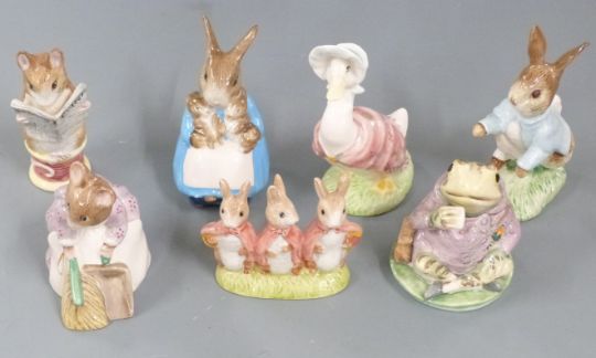 Seven Royal Albert Beatrix Potter figures including Tailor of Gloucester, Flopsy, Mopsy and Cottontail etc