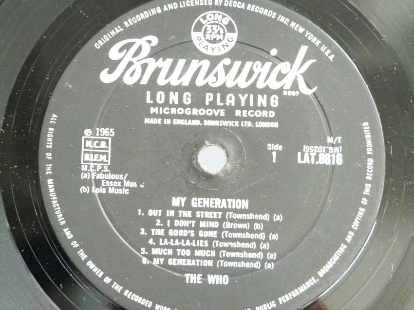 The Who - My Generation (LAT8616) record and cover appear at least Good