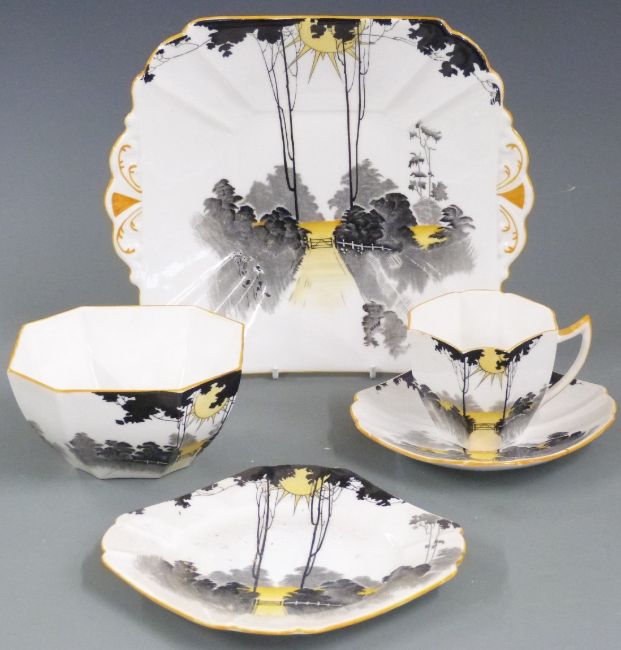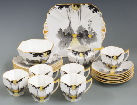 Shelley part tea set decorated in the Sunrise and Tall Trees pattern 11678, approximately 21 pieces