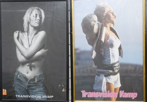 Two Transvision Vamp framed posters, each approximately 88 x 55cm