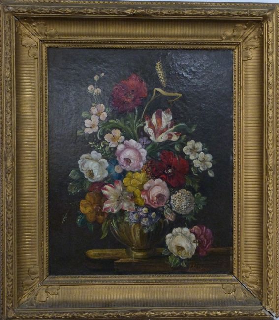 A Hoffmann (20thC), oil on board still life summer flowers, 56 x 46cm, in ornate gilt frame