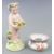 Dresden inkwell and a figure with anchor mark to base, H10cm