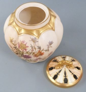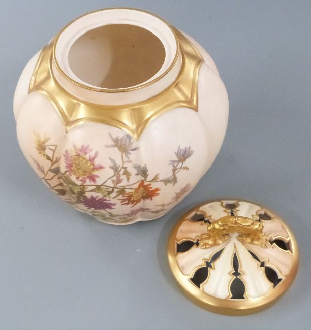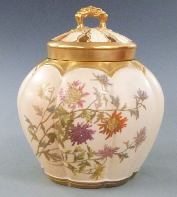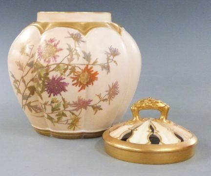 Royal Worcester blush ivory pot pourri of lobed form decorated with flowers, H20cm