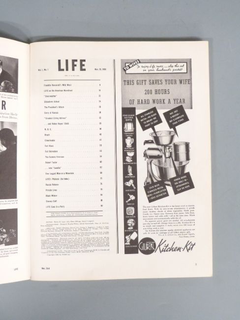 Life Magazine November 23, 1936, volume 1 number 1 First Edition in original publisher's illustrated wrappers