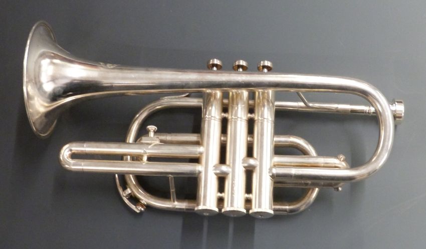 Amati 'Corton' silver plated cornet, reg no 750907, in fitted carry case