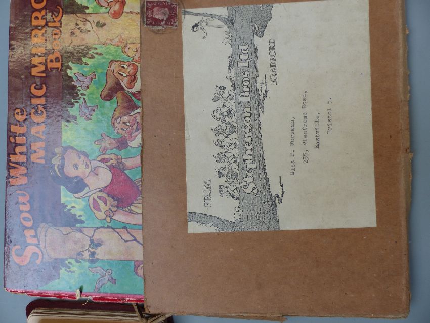 A group of ephemera including musical Edwardian autograph albums, vintage game, Cunard Queen Elizabeth 1968 album, children's books, musical carte visite, unusual Royal Air Force notepaper, Inman's Nautical Tables 1927 and leather wallets
