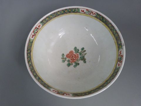 Chinese famille verte bowl with bird and floral decoration, 27cm diameter
