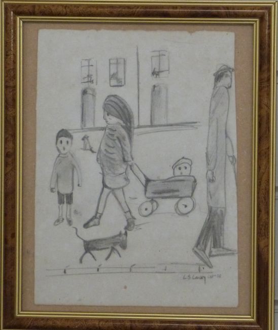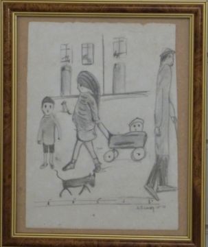 Two pencil drawings of figures in a naive style, both bearing signatures L S Lowry and dated '61, each 22 x 17cm