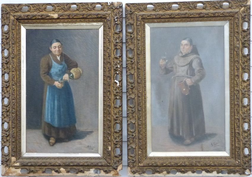 G Passini (19thC Italian School), pair of oils on canvas of monks with glasses of wine, 51 x 29cm, framed