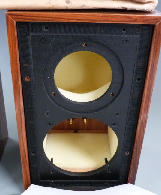 Two speaker casings, marked to outside of box Stirling BBC LS3/5a