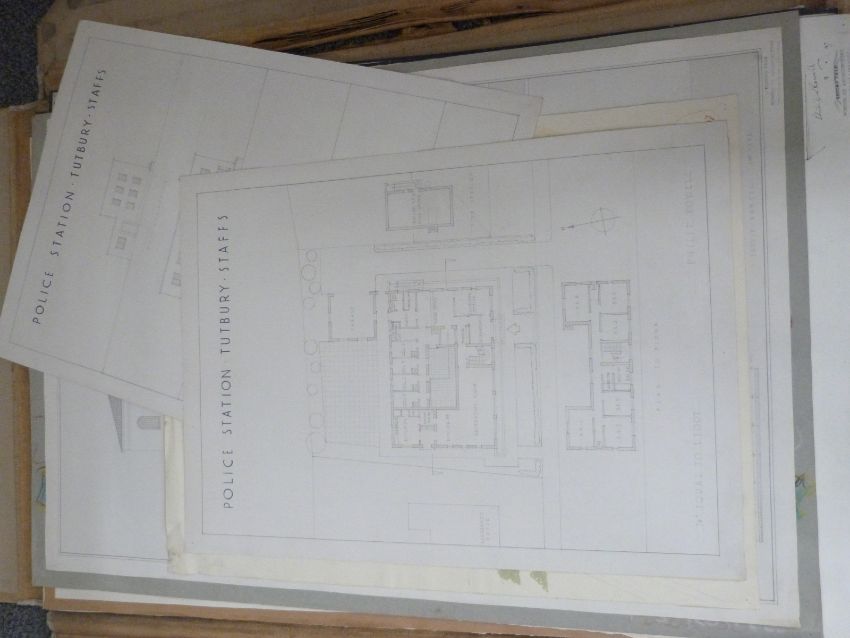 A folio of approximately 20 drawings by architecture student Philip Rowell, mostly dated 1940's, largest approximately 100 x 70cm