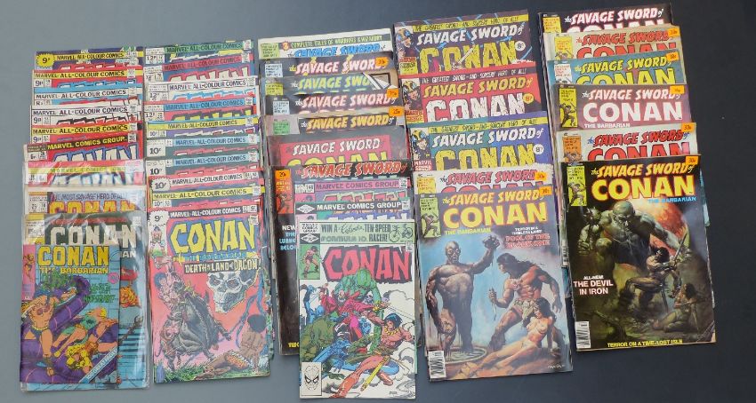 Thirty-five comics comprising Marvel Comics Conan The Barbarian 5, 10, 18, 26, 49, 57-59, 61-64, 65 x2, 69, 72, 75-77, 130, 135 and 146 and The Savage Sword of Conan The Barbarian 2-4, 6, 9-11, 13, 14, 15 x2 16-19, 21, 22, 24 and Digest Series 3.