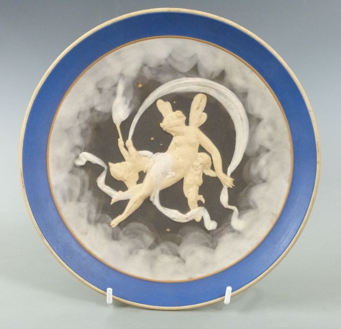 Villeroy and Boch relief moulded/pate sur pate style cabinet plate decorated with angels and cherubs, diameter 20cm