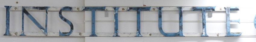 Large architectural sign 'Institute of Tropical Medicine & Pathology' comprising bronze or similar letters screwed to aluminium bars, height of letters approximately 20.5cm, overall length approximately 740cm