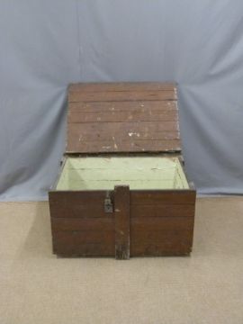 19thC stained pine trunk, ex Cinderford Chapel, Forest of Dean, W92 x D67 x H73cm