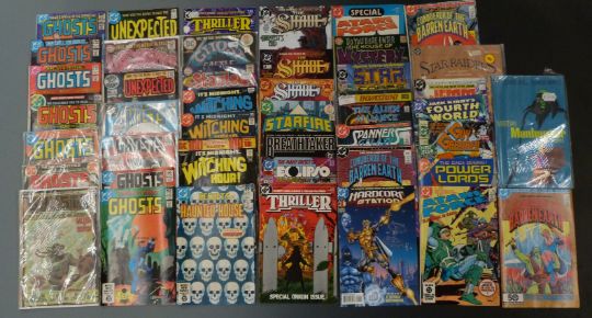 Forty-two DC comics comprising Ghosts 2, 12, 62, 70, 96, 104, 106, 108, 109 x2 and 112, The Unexpected 23, 110 and 201, Secrets of Haunted House 42, The Witching Hour 38, 72 and 81, Stanley and His Monster 110, Ghost Castle 2, Thriller 1, Eclipso 1, Breathtaker 2, Starfire 8, The Shade 1, 2 and 4, Hardcore Station 1, Conqueror of the Barren Earth 1 and 4, Martian Manhunter 1, Spanners Galaxy 1, The Alien Alliance 1, Star Corps 1, The House of Mystery 179, Atari Force 1 and 10, Power Lords 1, Guy Gardner 1, Forth World 4, Jemm Son of Saturn 3 and Star Raiders 1.