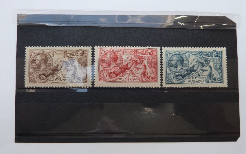 Great Britain 1913-18 2s 6d, 5s and 10s seahorses, mounted mint