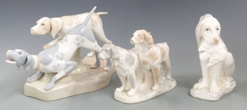 Lladro horse, Lladro swan, Szeiler Studio recumbent horse, Lladro style dog figures etc, tallest 22cm