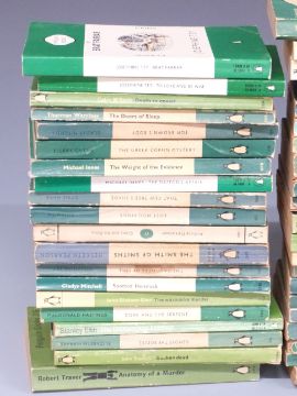 Collection of Penguin Crime Novels (c1940s - 1960s) including Margery Allingham, Agatha Christie, Sir Arthur Conan Doyle, John Dickson Carr, John Appleby, Michael Innes, Edmund Crispin, Josephine Tey, Simenon, John Trench, Peter Curtis, Edmund Crispin, Peter Cheyney, Freeman Wills Crofts, William Haggard (63)