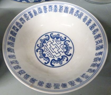 Four Chinese blue and white ginger jars, a Chinese blue and white bowl, a Chinese flower pot and a 19thC Chinese prunus ginger jar