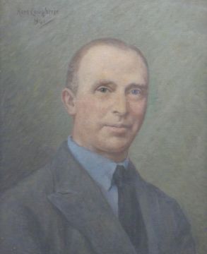 Kate Coughtrie oil on board of a gentleman, signed and dated 1941 to left, 50 x 40cm, framed and glazed