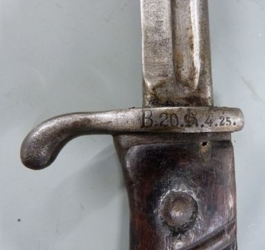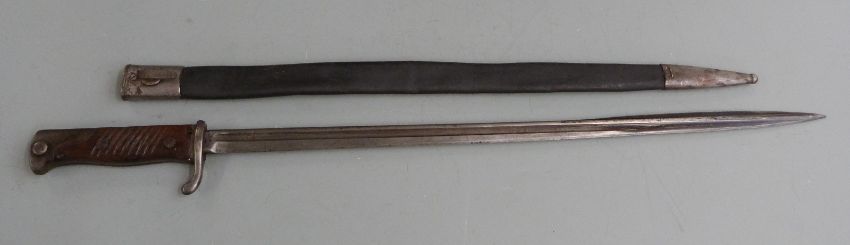 German 1898 pattern original bayonet for the Mauser rifle, stamped B 20.R 4.25 to guard and B20 R 440 to scabbard throat, with 52cm quillback blade and scabbard