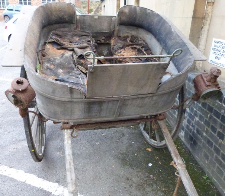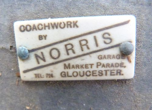 F Norris, Gloucester 19thC or early 20thC two wheel horse drawn governess cart with maker's name to brass hub caps and badge to rear door, with three lamps