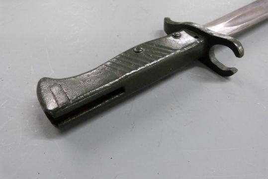 German 88/98 pattern Ersatz all steel version of the 98/05 'butcher' bayonet, with grooved hilt, 35.5cm fullered blade, scabbard and frog