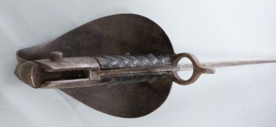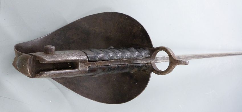 Royal Navy 1859 first pattern cutlass bayonet with ribbed grip, bowl guard and 68cm blade