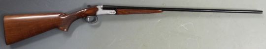 Yildiz.TSE 410 side by side shotgun with engraved lock, trigger guard, underside and top plate, chequered semi-pistol grip and forend, single trigger and 28 inch barrels, overall length 113cm length of pull 36cm, serial number 1965. PLEASE NOTE THAT A VALID RELEVANT FIREARMS/SHOTGUN CERTIFICATE IS REQUIRED TO HANDLE/PURCHASE THIS ITEM.
