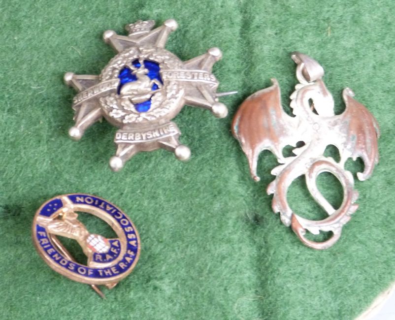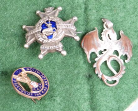 A collection of military buttons, sweetheart brooches and enamel and metal lapel badges including Army Medical Corps, Sherwood Foresters, Gloucestershire Regiment etc