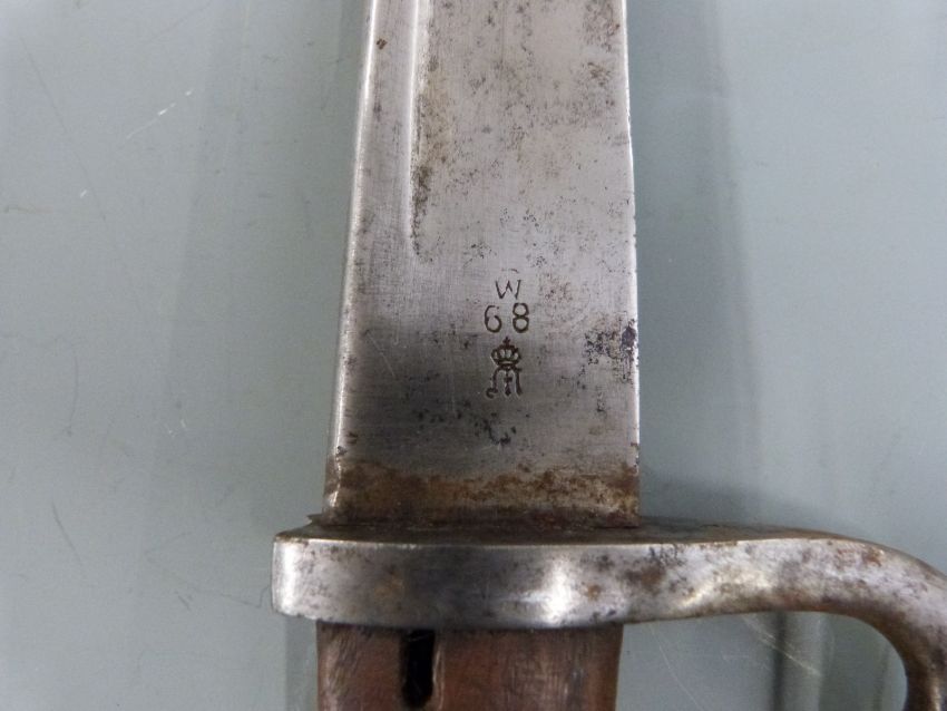 German AS71/98 pattern bayonet with some clear stamps, backswept quillon and 51cm pipeback blade