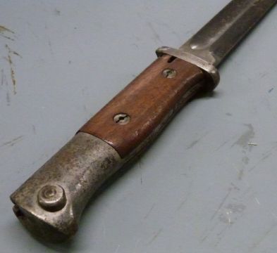 German 84/98 pattern bayonet with flashguard, F Herder & Son Solingen to one side of ricasso and Walter and Co Muhlhausen to the other, 25cm fullered blade, with scabbard and frog