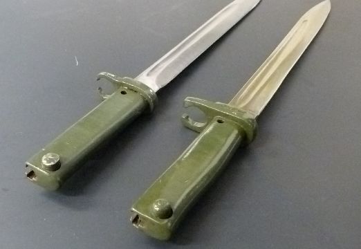 Two German 88/98 pattern Ersatz all steel bayonets, one stamped 213 to crosspiece, both with 31cm blades and scabbards