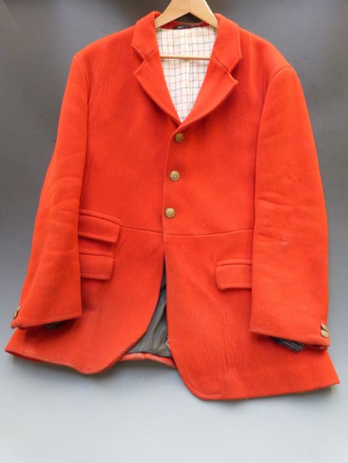 Three hunting jackets/pinks including two with buttons for Heythrop Hunt (two different button designs), fourteen on the tails and eight on the jacket, the other tailcoat with fourteen GH buttons