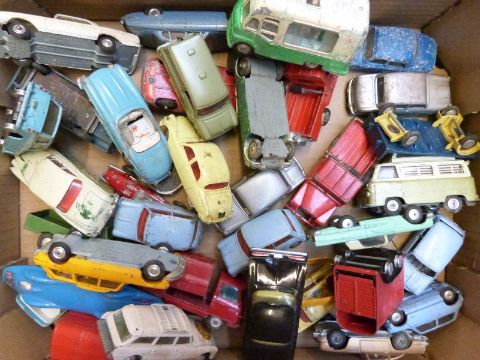 Forty Corgi Toys diecaSt model vehicles including Citroen Safari Winter Sports and Wild Life Preservation, Proteus Campbell Bluebird, Ford Thames Airborn Caravan, Smiths Karrier Ice Cream Van etc.