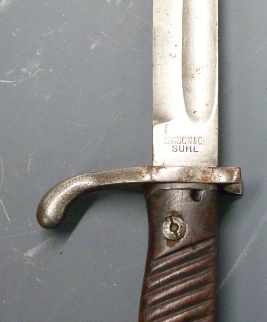 German 1898/05 pattern bayonet early type with part muzzle ring and no flashguard, clear stamps, Simson & Co makers, with 37cm fullered blade and scabbard