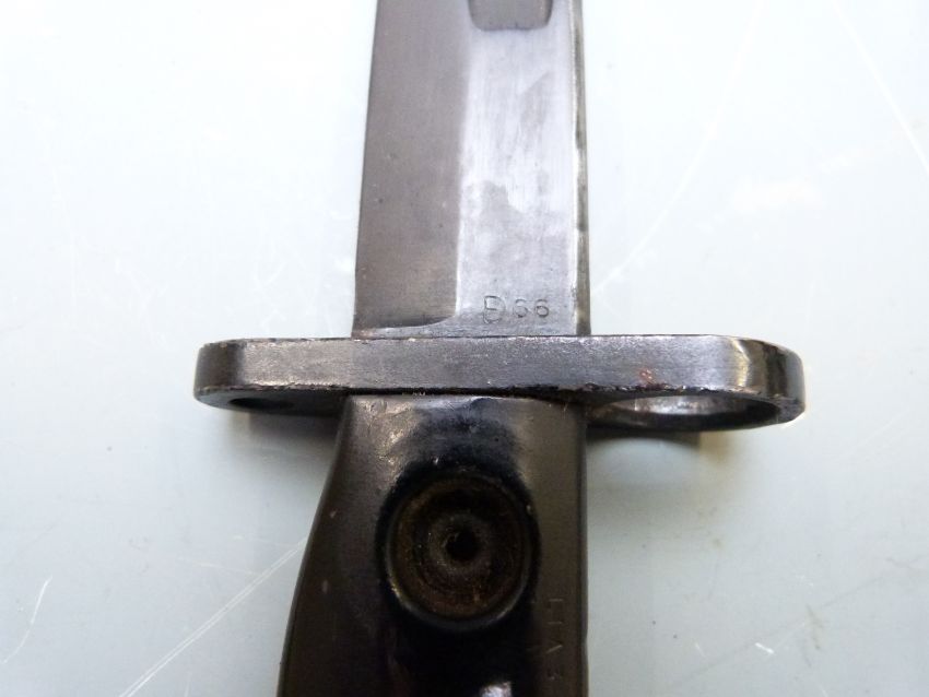 British L1A3 bayonet with 20cm short fullered bowie style blade, scabbard and frog