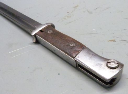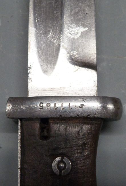 German 84/98 pattern bayonet with flashguard, F11185 to guard and 25cm fullered blade and scabbard